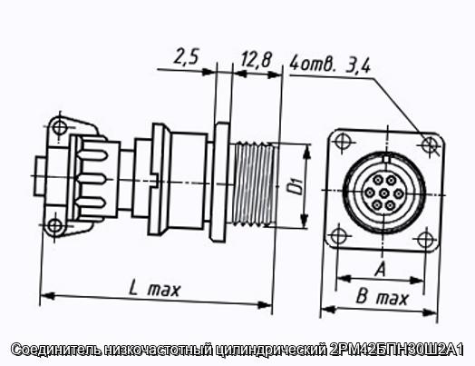 Соединитель 2РМ42БПН30Ш2А1 цилиндрический низкочастотный негерметичный объемного монтажа с резьбовой фиксацией сочлененного положения.