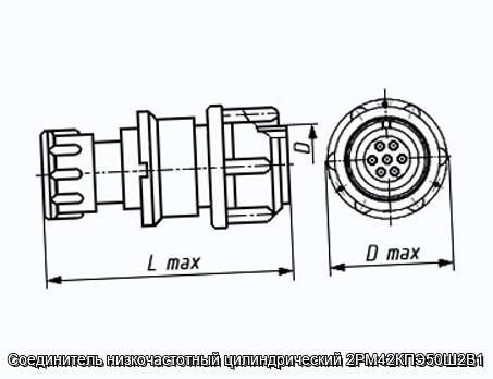 Соединитель 2РМ42КПЭ50Ш2В1 цилиндрический низкочастотный негерметичный объемного монтажа с резьбовой фиксацией сочлененного положения.