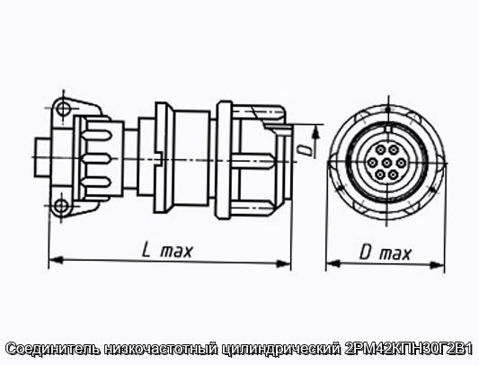 Соединитель 2РМ42КПН30Г2В1 цилиндрический низкочастотный негерметичный объемного монтажа с резьбовой фиксацией сочлененного положения.