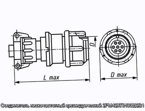 Соединитель 2РМ42КПН30Ш2В1 цилиндрический низкочастотный негерметичный объемного монтажа с резьбовой фиксацией сочлененного положения.
