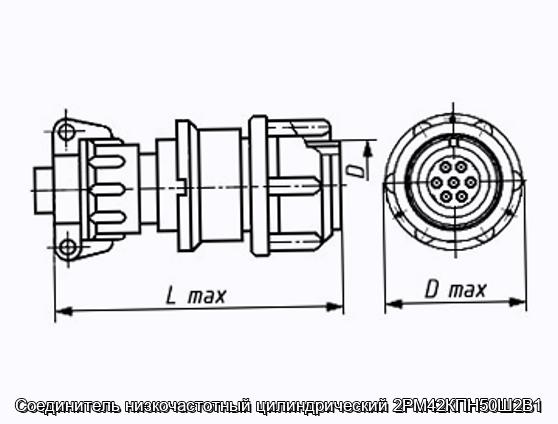 Соединитель 2РМ42КПН50Ш2В1 цилиндрический низкочастотный негерметичный объемного монтажа с резьбовой фиксацией сочлененного положения.
