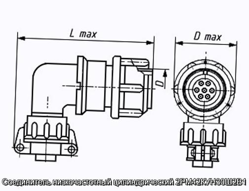 2РМ42КУН30Ш2В1 вилка кабельная с угловым патрубком, гайкой для неэкранированного кабеля и контактами покрытыми серебром