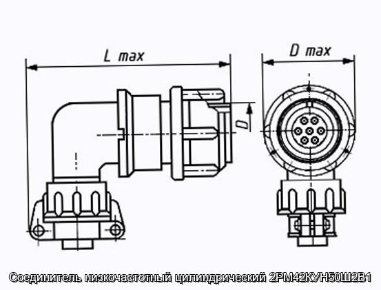 Соединитель 2РМ42КУН50Ш2В1 цилиндрический низкочастотный негерметичный объемного монтажа с резьбовой фиксацией сочлененного положения.
