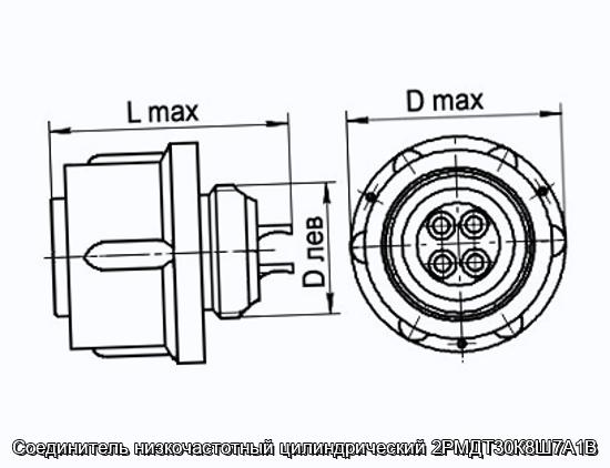 Соединитель 2РМДТ30К8Ш7А1В цилиндрический низкочастотный тропикоустойчивый с резьбовой фиксацией сочлененного положения.