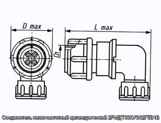 2РМДТ33КУЭ32Г5В1В розетка кабельная с серебряными контактами, угловым патрубком и гайкой для экранированного кабеля