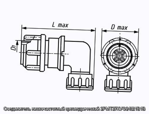 Соединитель 2РМТ27КУЭ24Ш1В1В цилиндрический низкочастотный тропикоустойчивый с резьбовой фиксацией сочлененного положения.