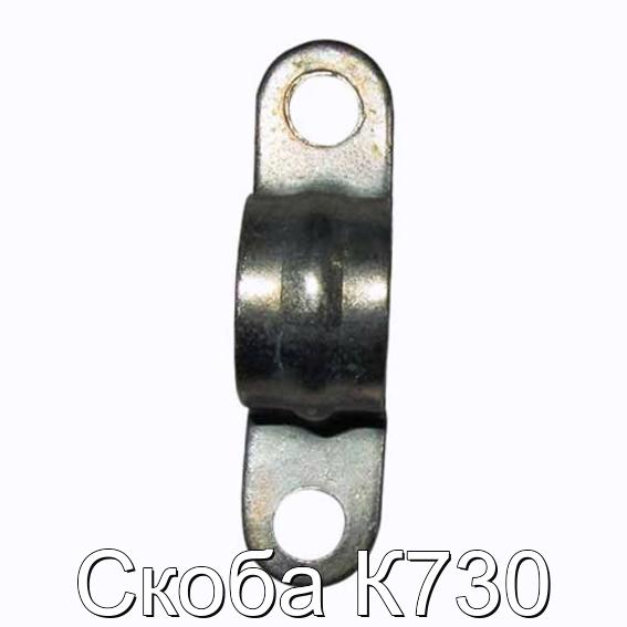 Скоба К730 предназначена для крепления труб, кабелей и проводов к строительным конструкциям с помощью винтов, шурупов и т.п. или с помощью пристрелки.