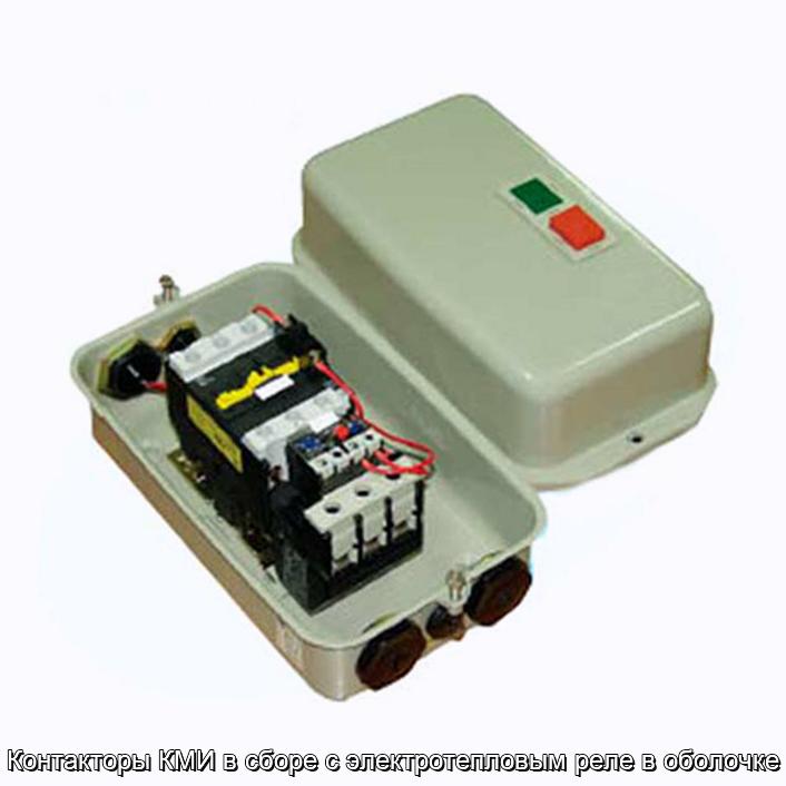 Контакторы КМИ в сборе с электротепловым реле в оболочке используется для дистанционного пуска с помощью подключения к сети, а также остановки трехфазных асинхронных электрических двигателей с короткозамкнутым ротором на напряжение переменного тока до 400 В, для защиты электрических двигателей от перегрузок недопустимой продолжительности сверхтоков, которые возникают при обрыве одной из фаз.