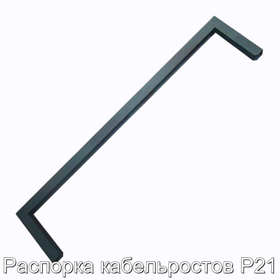 Распорка кабельростов Р21 крепится между кронштейнами КР7 для соединения двух рядов панелей питания релейного помещения. Распорки кабельростов Р21 применяются для крепления стативов постов ЭЦ по верху и прокладки по них: