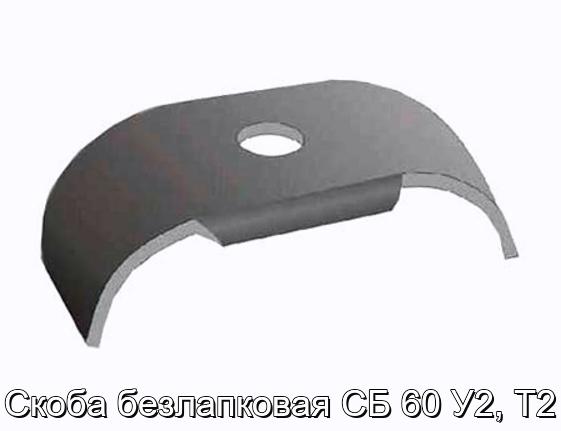 Скоба безлапковая СБ 60 У2, Т2 предназначена для крепления двух параллельно проходящих труб и кабелей при прокладке их по различным строительным и металлоконструкциям при наличии одного ряда крепежных отверстий или при их расположении “по месту”.