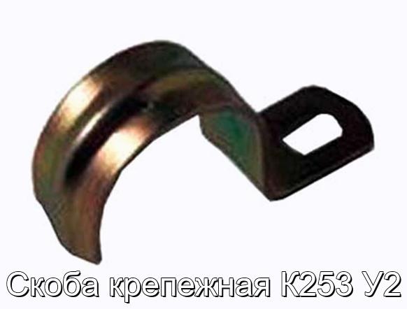 Скоба крепежная К253 У2 предназначена для крепления труб, кабелей и проводов к строительным конструкциям с помощью винтов, шурупов.