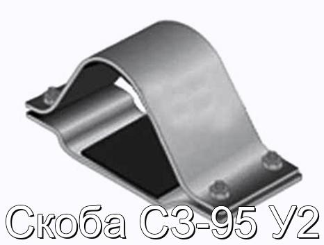 Скоба СЗ-95 У2 предназначена для крепления электрокабеля к опоре двумя болтами. Скобы состоят из двух половинок. Поверхность скоб С3 защищена порошковой краской для защиты от коррозии, оцинкованные, окрашенные грунт-краска.