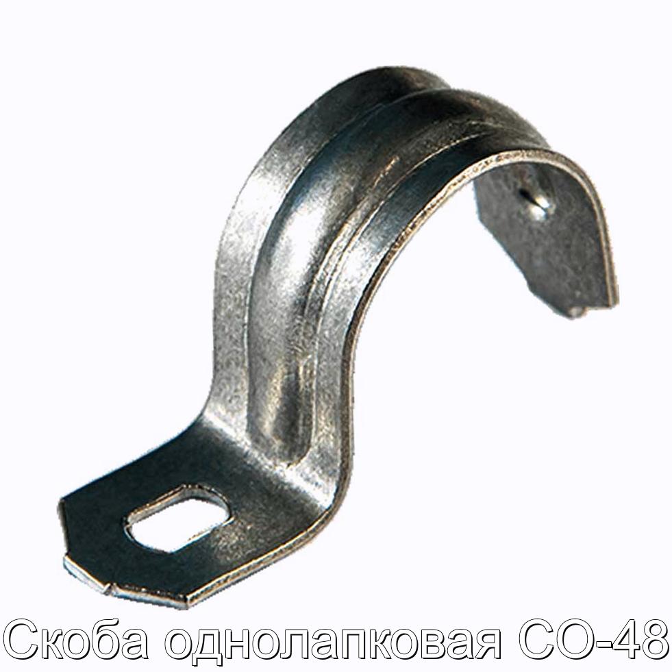 Скоба однолапковая СО-48 предназначена для крепления труб и кабелей при прокладке по строительным и электромонтажным конструкциям с большим количеством изгибов, при наличии одного ряда крепежных отверстий или при их расположении «по месту».