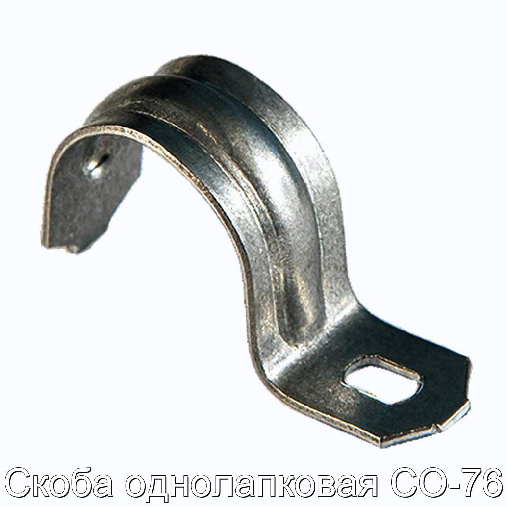 Скоба однолапковая СО-76 предназначена для крепления труб и кабелей при прокладке по строительным и электромонтажным конструкциям с большим количеством изгибов, при наличии одного ряда крепежных отверстий или при их расположении «по месту».