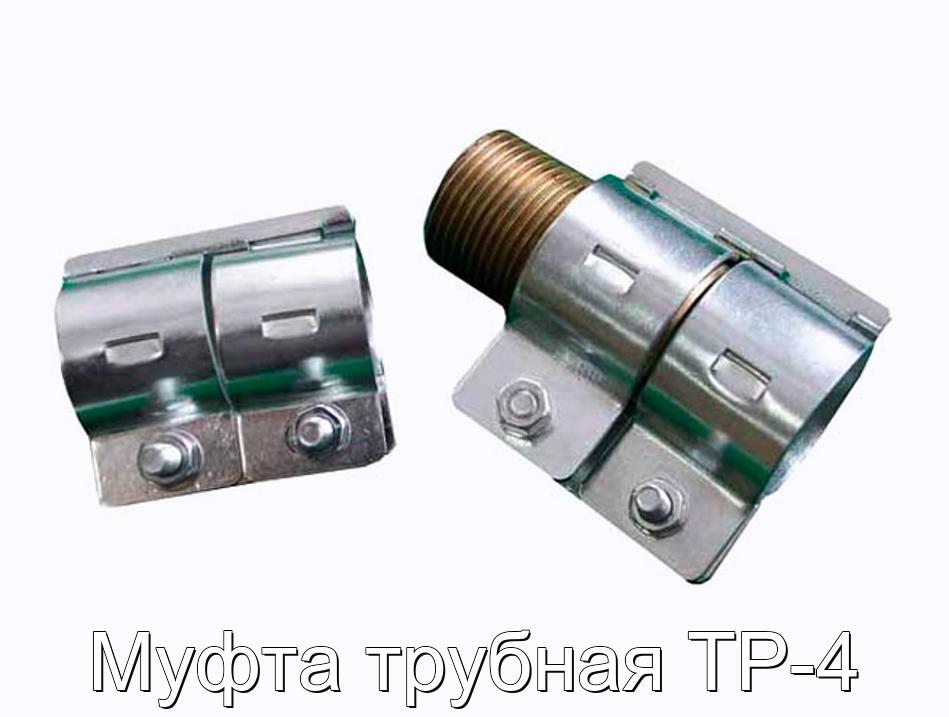 Муфта трубная ТР-4 предназначена для без резьбового соединения стальных труб с метало рукавами или патрубками У476 -У479.