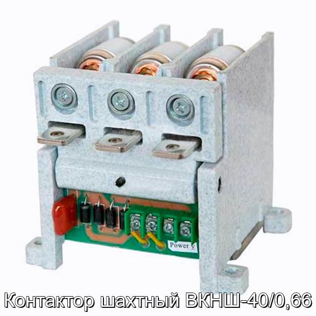 Контактор шахтный ВКНШ-40/0,66 предназначен для включения и отключения приемников электрической энергии 3-х фазных сетей на номинальных напряжениях 380В, 660В, 1140В и частотой 50-60 Гц.